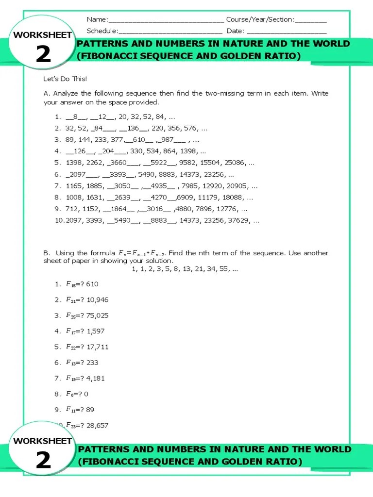 The fibonacci spiral is based upon the fibonacci numbers. Use a spreadsheet to graph the data. Formerly known as scholastic printables, we offer printable activities for any subject . You'll be answering questions on topics like the fibonacci sequence . Browse patterns in nature resources on teachers pay teachers, a marketplace trusted by millions of teachers for original educational .